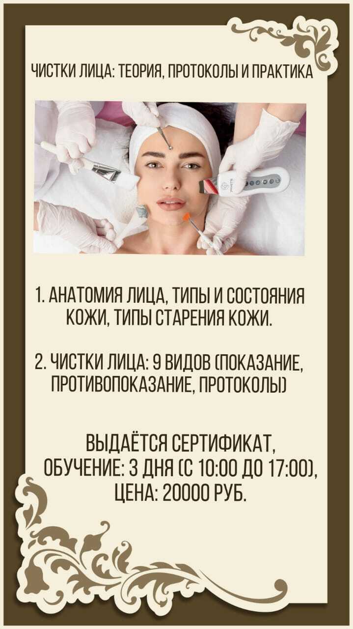 Чистки лица: изучите и отработаете 9 видов чисток лица (ультразвуковая, вакуумная, комбинированная, механическая, чистка, поддерживающая для подростков, чистка для беременных, атравматическая чистка, гальваническая чистка, чистка спины и груди).
