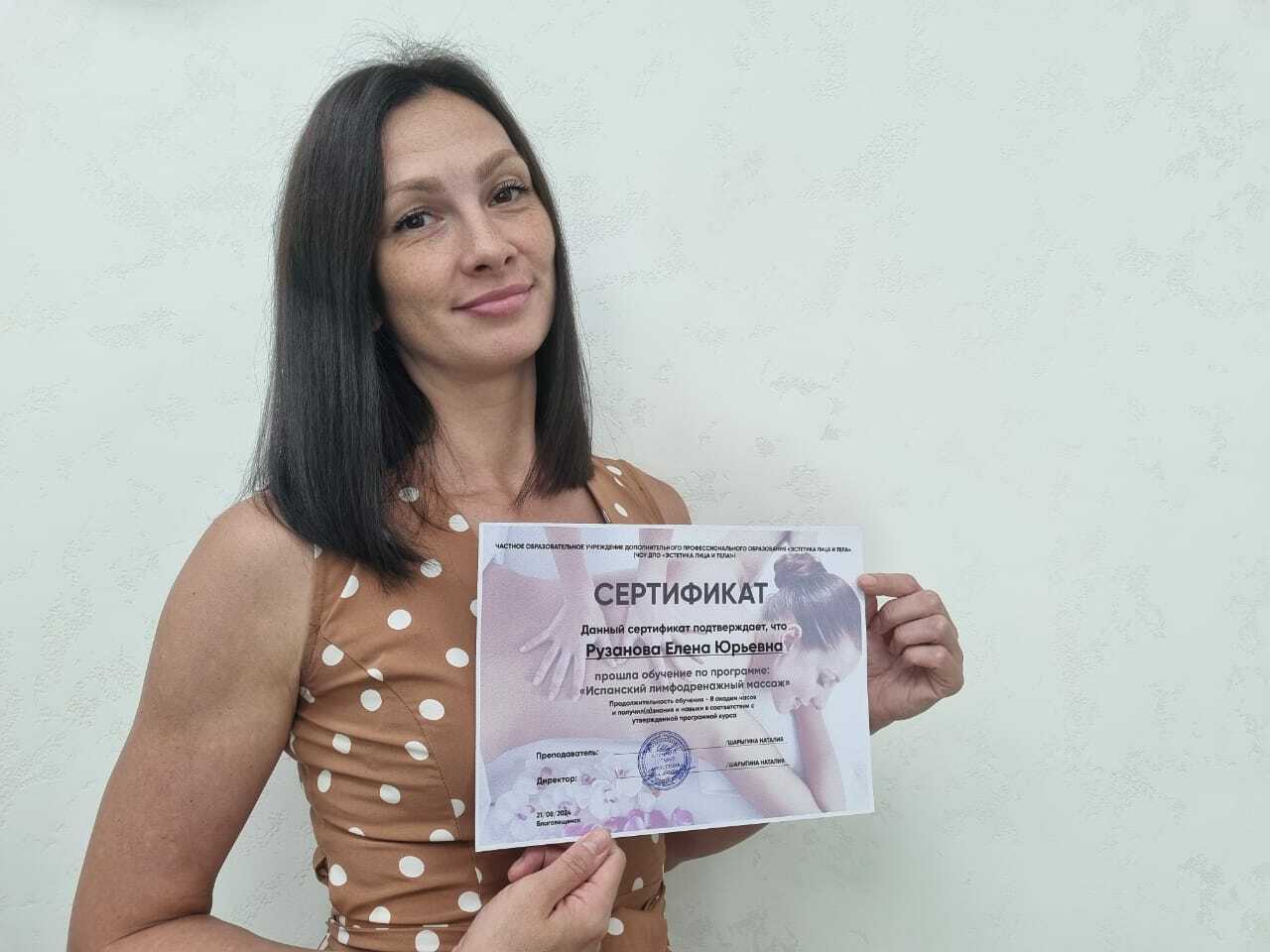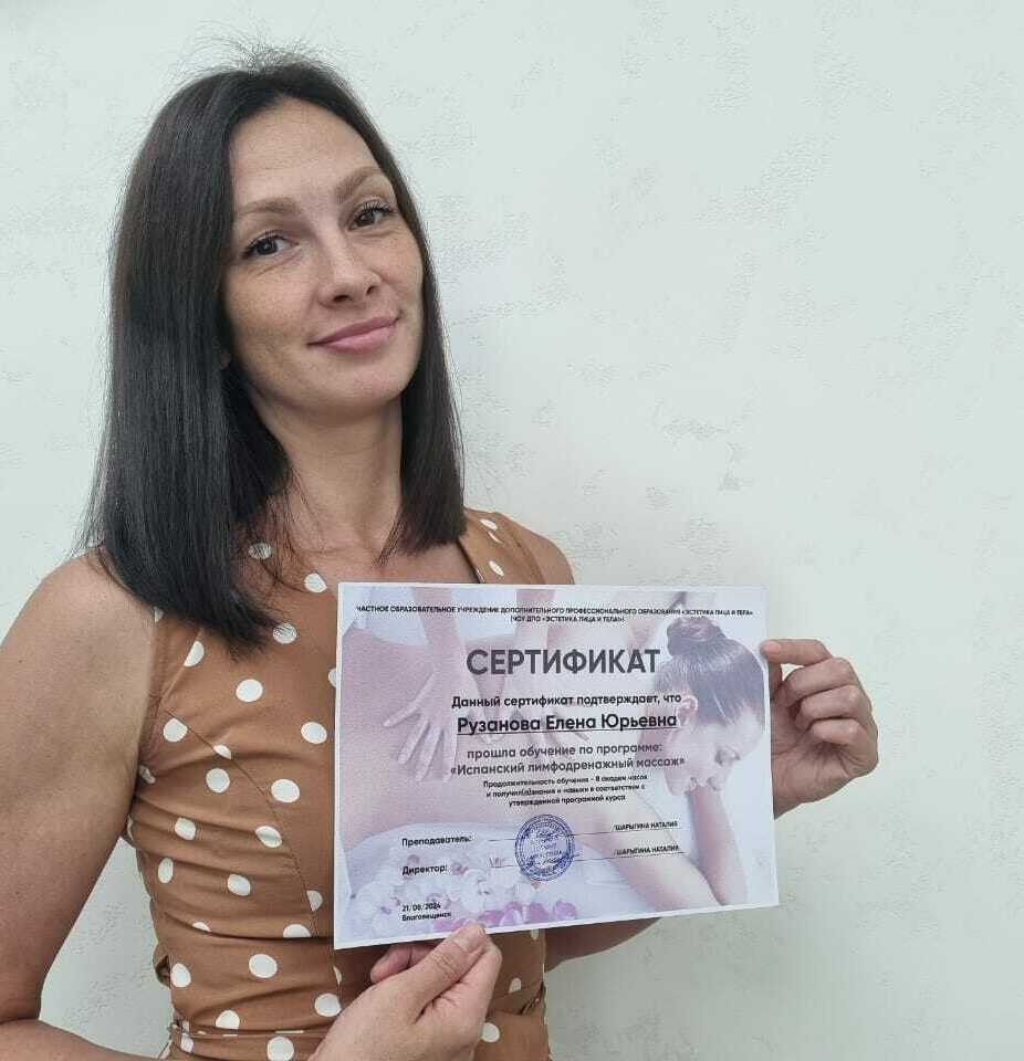 Руководитель студии, мастер по массажу и косметологии - опытный профессионал, обладающий высокими навыками, владеющий более 30 массажных техник по телу и лицу. Так же, имеет диплом "Тренер-преподователь по массажу и косметологии" г. Москва. Имеется медицинское образование. Стаж работы 8 лет.